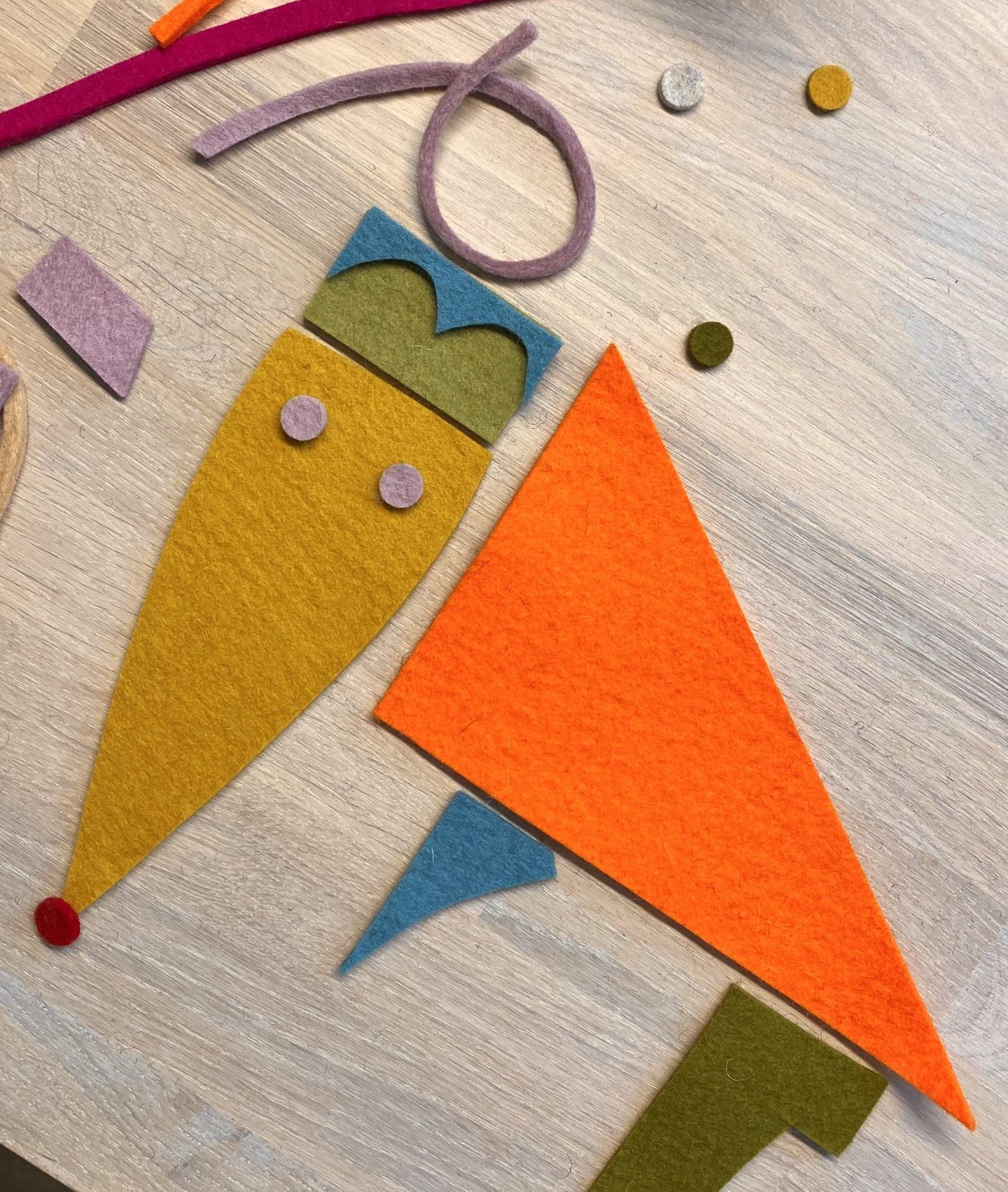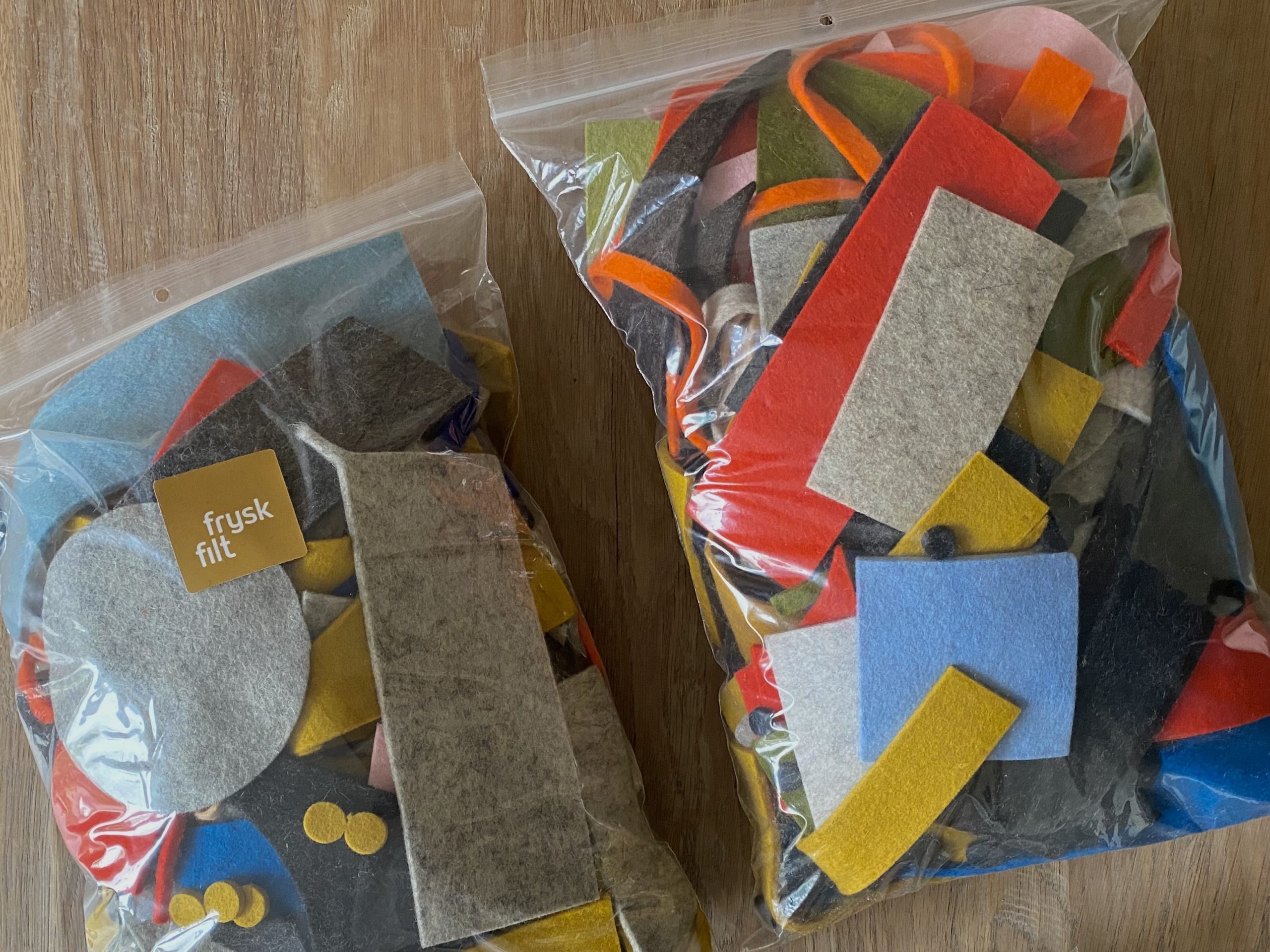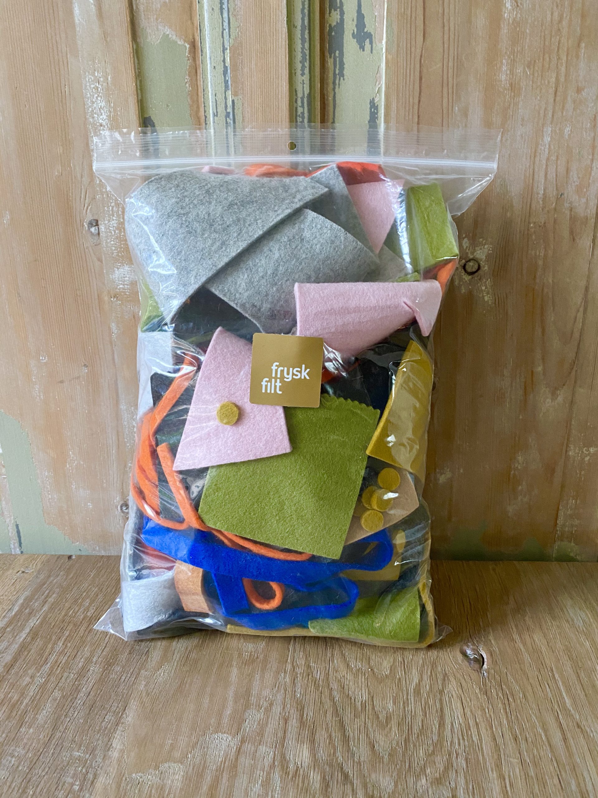 Een pakket met restjes vilt om uren mee zoet te zijn! Alle lapjes zijn 100% wolvilt en 2 of 3 mm dik. Geen voorgestanste vormpjes, maar kleinere lapjes en iets grotere lapjes (2-15 cm). Zo kun je zelf de vormen bepalen.