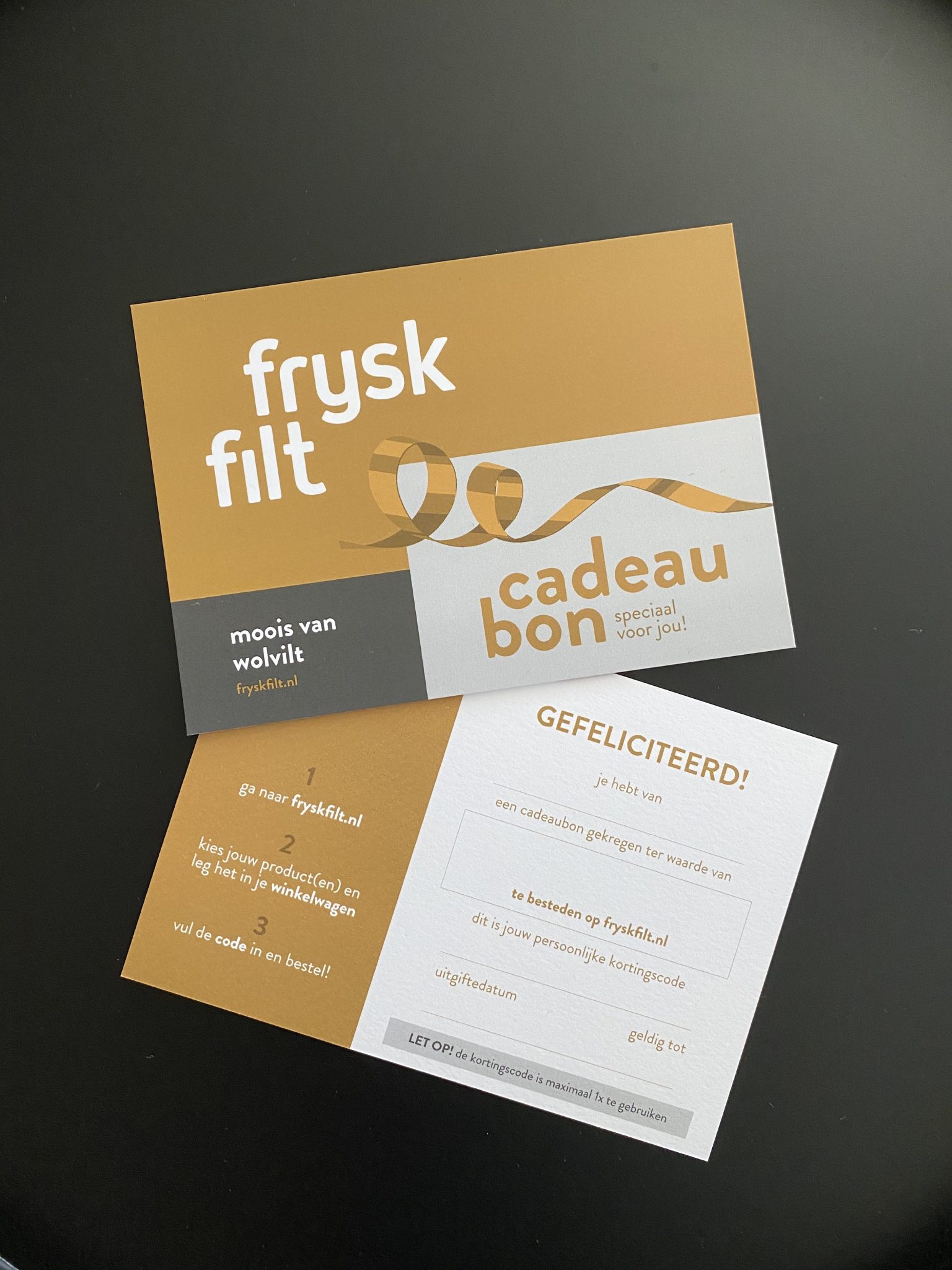 Het is niet altijd eenvoudig een cadeau voor iemand te zoeken. Een etui? Of toch een tas? Maar ja, in watvoor kleur en welke maat? Daarom is het nu mogelijk een cadeaubon te bestellen die op fryskfilt.nl kan worden ingewisseld. Zo laat je iemand lekker zelf uitkiezen. Dát is echt een mooi cadeau!