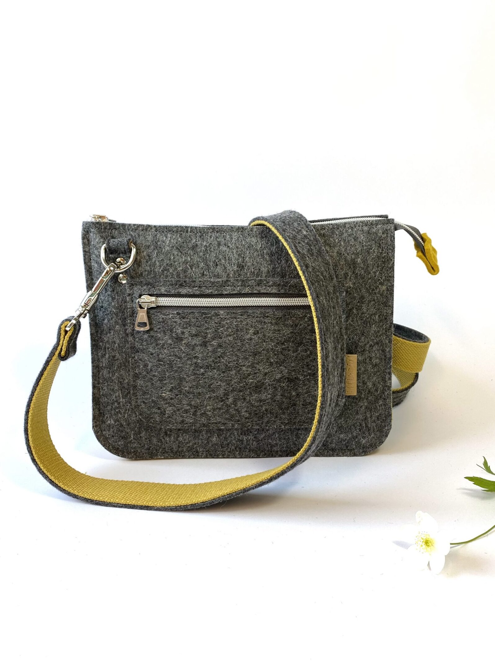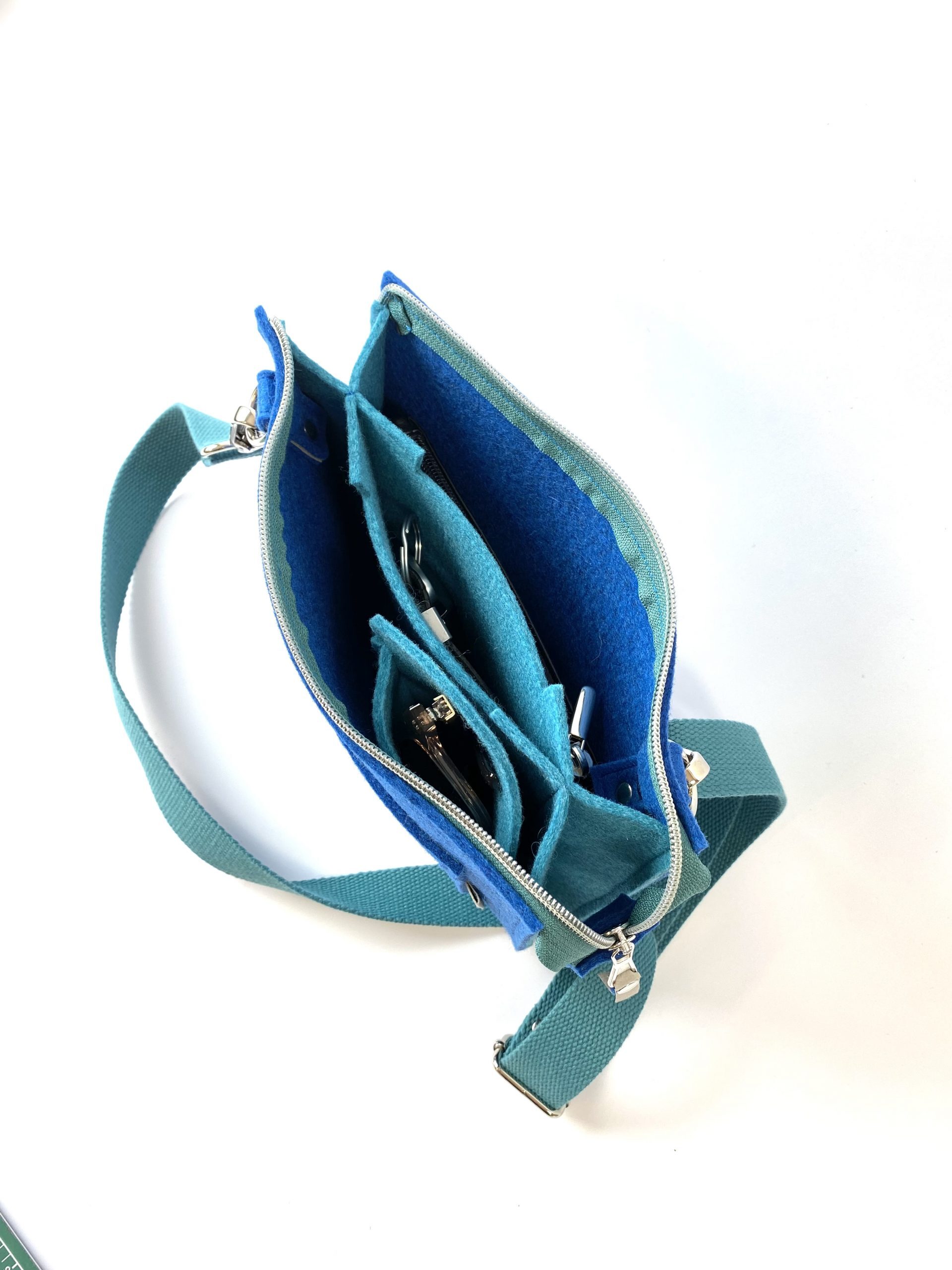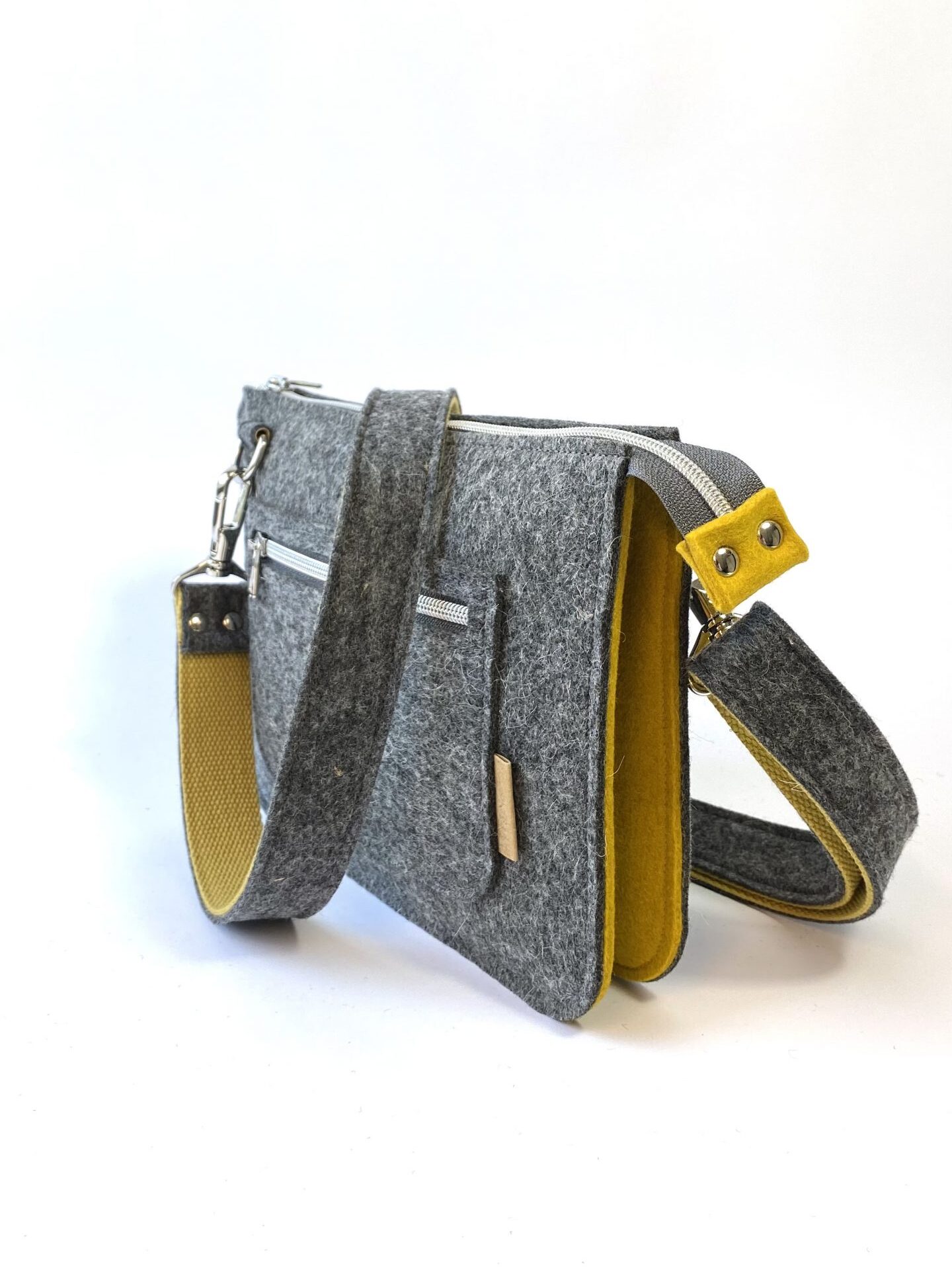 Deze handige schoudertas is gemaakt van 100% wolvilt. De tas bestaat uit 2 hoofdvakken en een kleiner (telefoon)vakje er tussenin en een afsluitbaar vakje voorop de tas. Voor al je belangrijke zaken zoals telefoon, portemonnee, sleutels én je lippenstift… ! De verstelbare schouderband is lekker lang zodat je hem desgewenst schuin over je schouder kunt dragen.