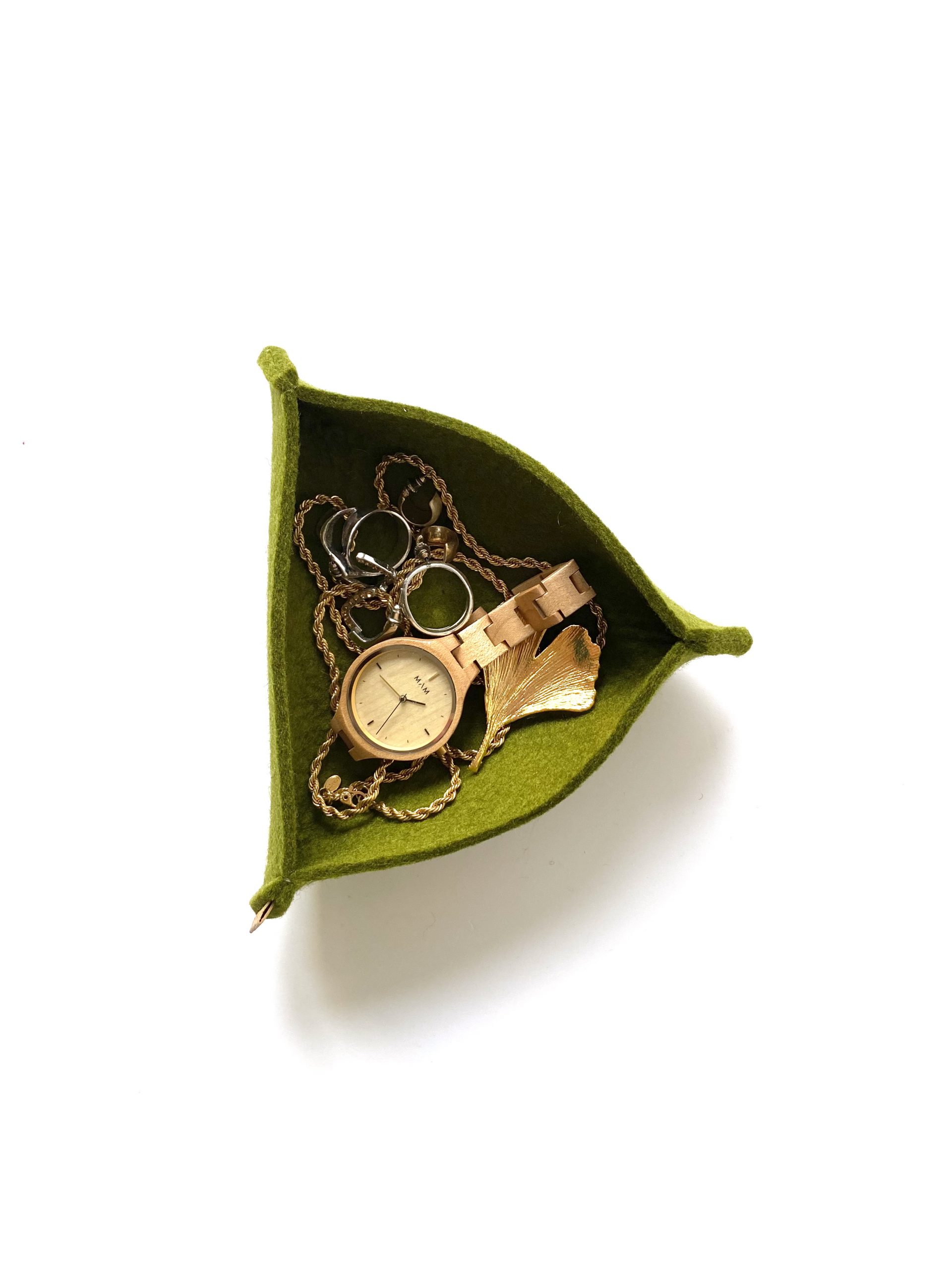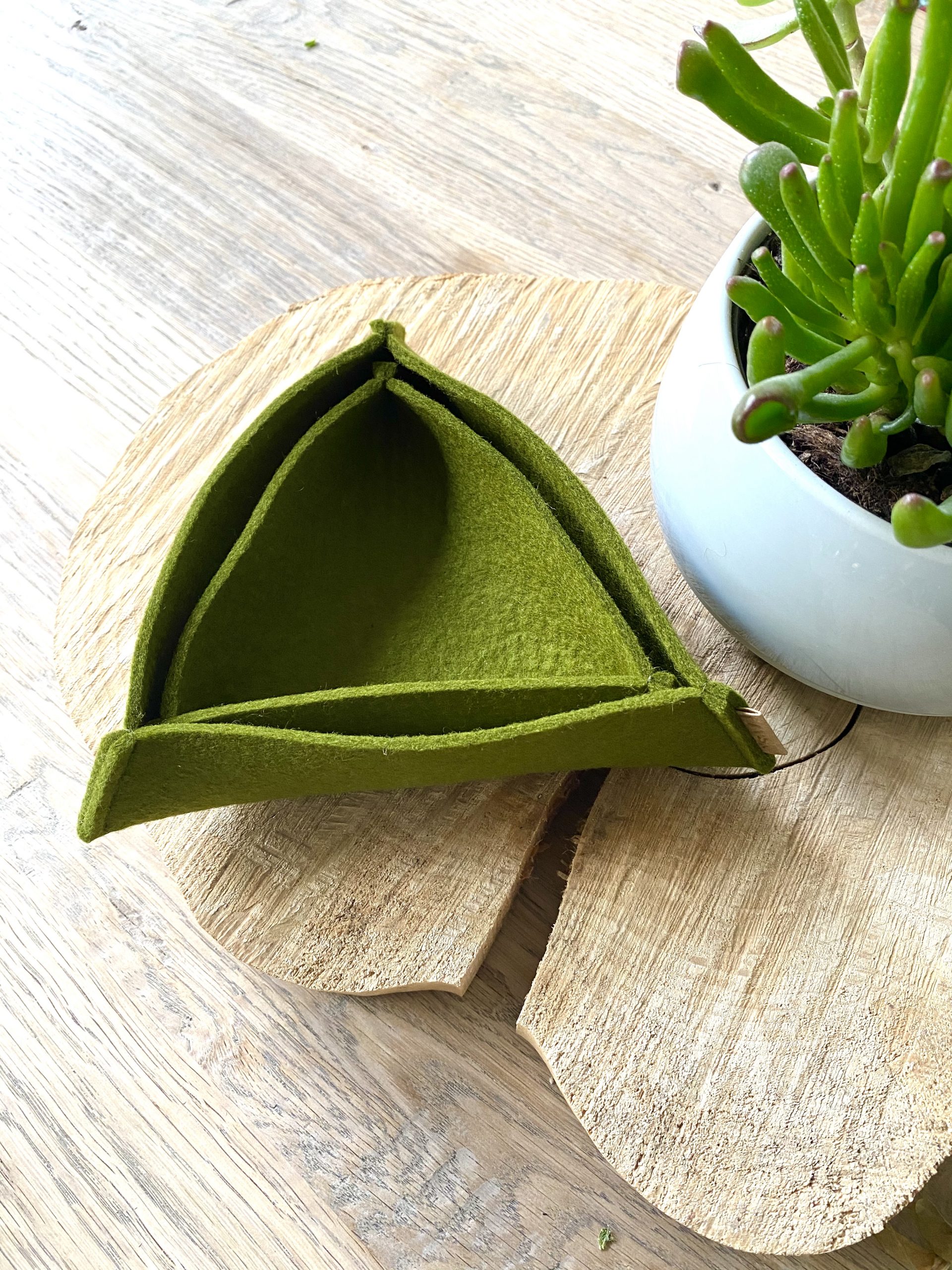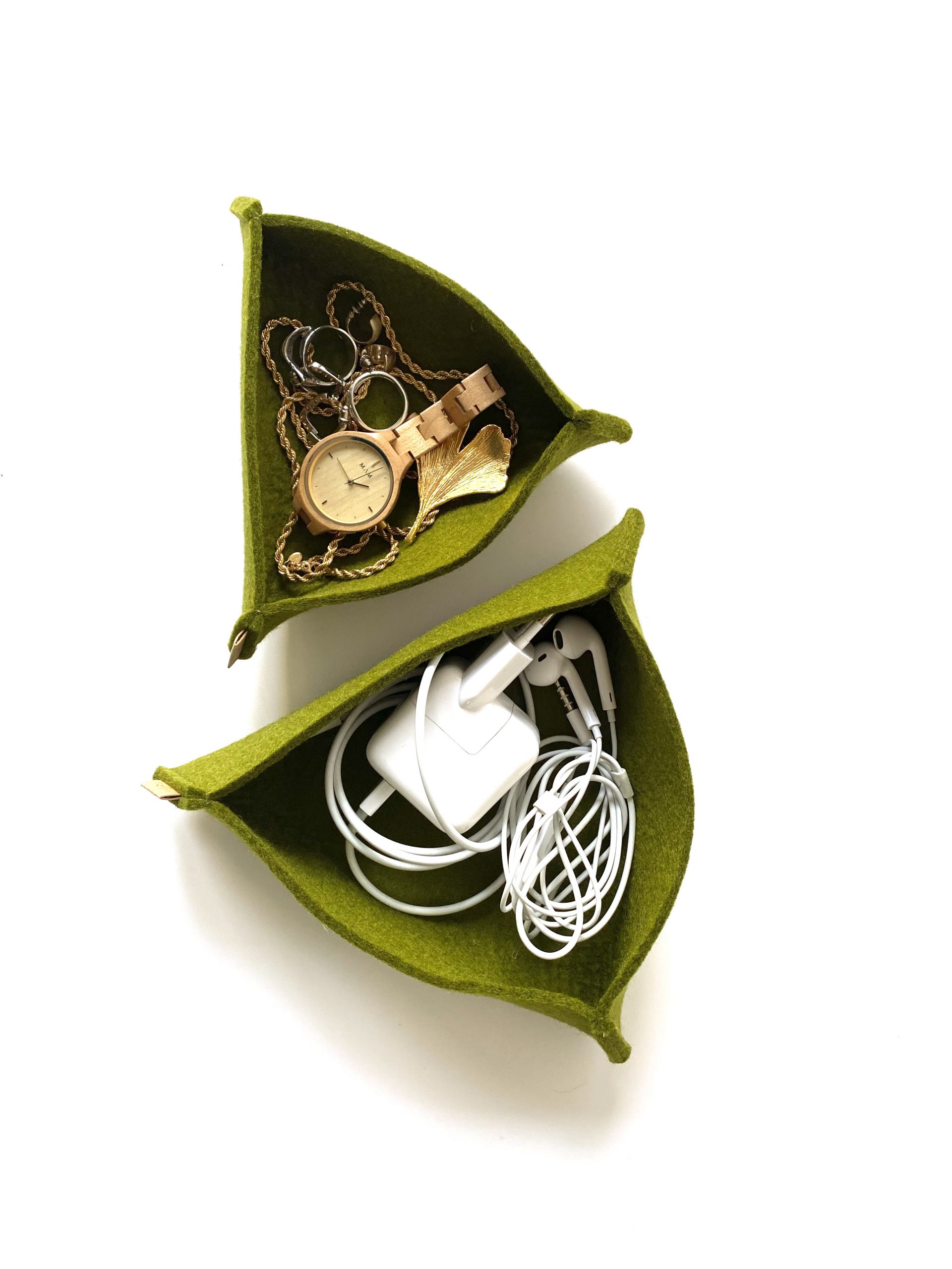 Voor al die kleine rondhangende, maar kostbare dingen: sieraden, snoertjes, oortjes, sleutels… Gemaakt van 100 % wolvilt (3 mm dik). Voordeliger als set!